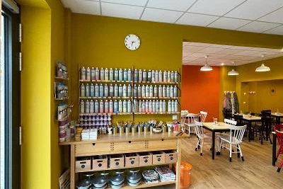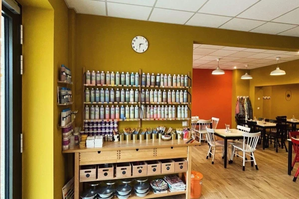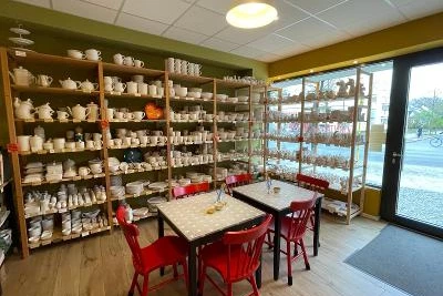 Gestalte dein Meisterwerk! Wir haben verschiedene Hilfsmittel wie Schablonen, Stempel, Töpferscheiben, Inspirationsbücher, um nur einige zu nennen, die du benutzen kannst, um dein Design umzusetzen. Tauche ein in die Welt der Farben mit unserer riesigen Auswahl an über 100 einzigartigen Farbtönen. Lass deine Kreativität aufblühen und genieße den Malprozess! Unser freundliches Team steht dir zur Seite, wenn du Hilfe oder kreative Anregungen benötigst.